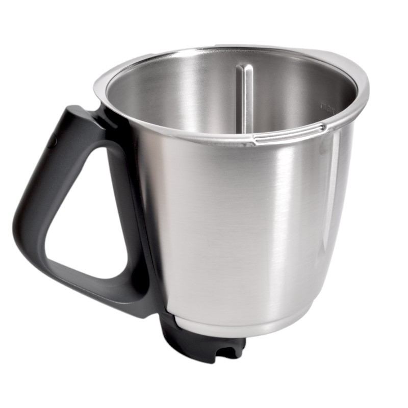 Il boccale del Bimby TM6 è in acciaio inox di alta qualità e resistente alle alte temperature, ha una capacità massima di 2,2 litri.